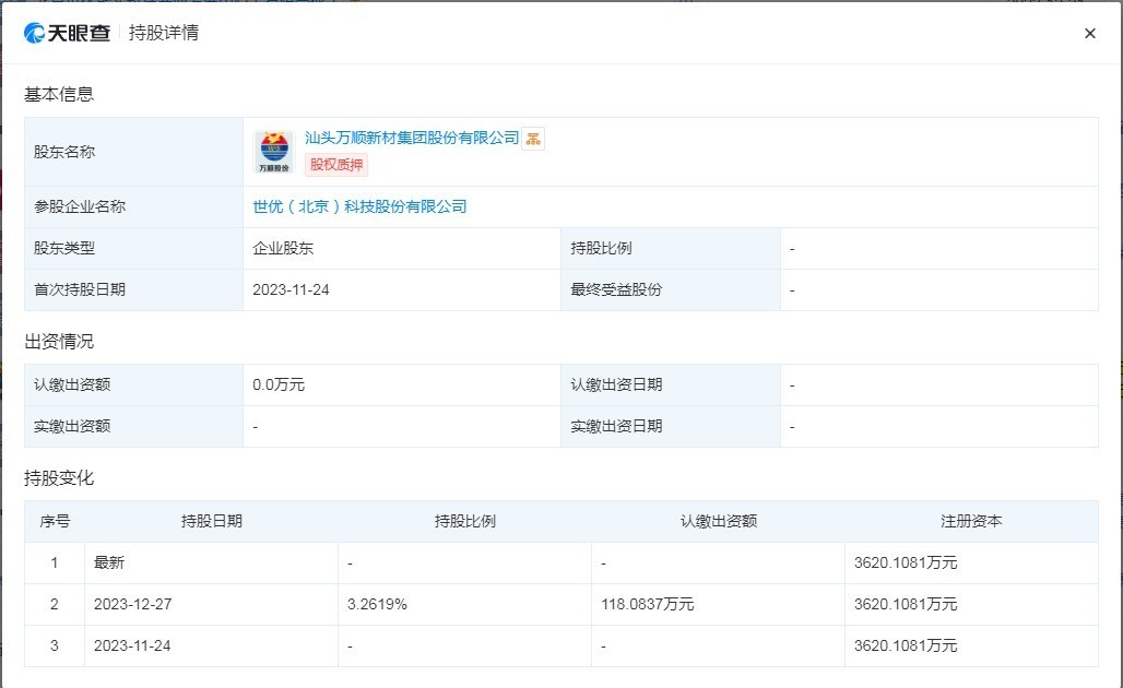 据悉,同花顺昨日(2月6日)将万顺新材归为“DeepSeek概念”。天眼查数据显示,2023年11月24日,万顺新材参股世优科技3.26%股权。